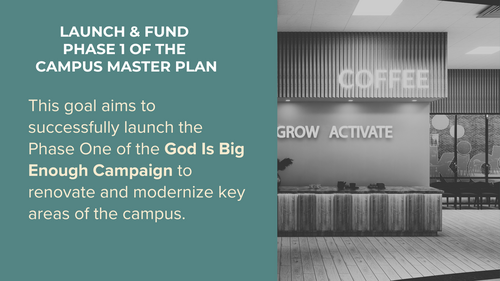 ✅ Begin remodel of at least two priority areas (e.g., prayer chapel, sanctuary, pavilion, or welcome center)
